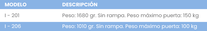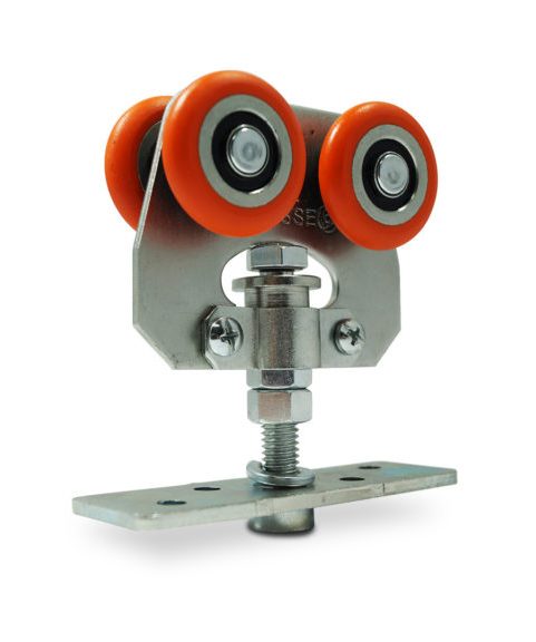 Sistema corredizo colgante con rodamientos de alta precisión. Compuesto de 2 correderas testeadas para funcionamiento continuo de puertas corredizas de hasta 300 kg. Amplia resistencia y durabilidad en diversos ambientes.